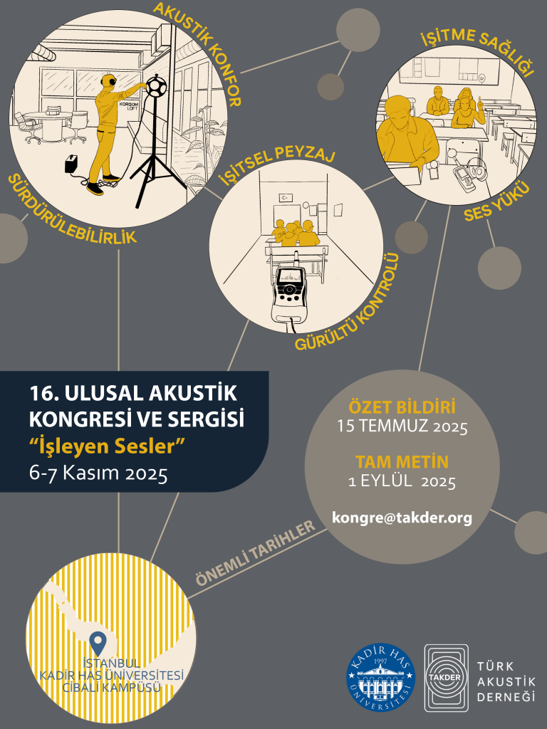 16. Ulusal Akustik Kongresi ve Sergisi 6-7 Kasım 2025 tarihlerinde Kadir Has Üniversitesi, Cibali Kampüsü, İstanbul’da gerçekleşecektir.